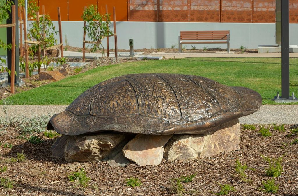 The site-specific sculpture Turtle Guardian is inspired by the local eastern long-necked turtle (Chelodina longicollis).